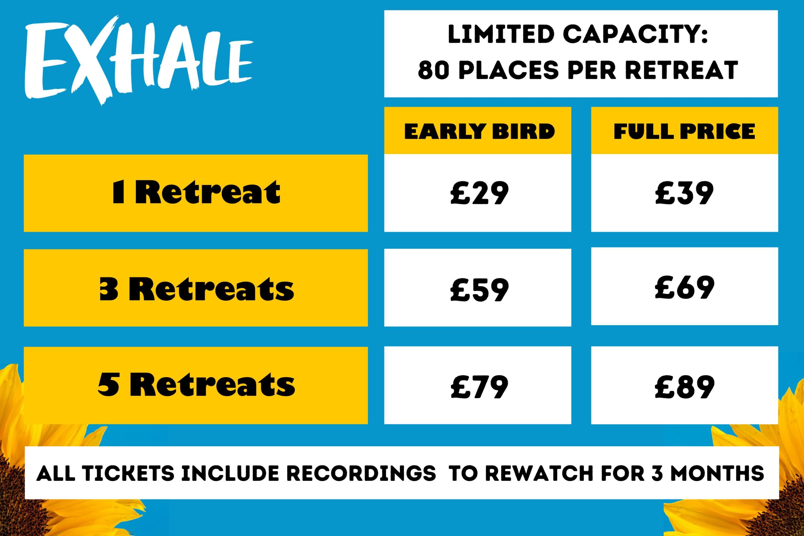 5 Mini Retreats for £79. Includes recordings to rewatch for 3 months.