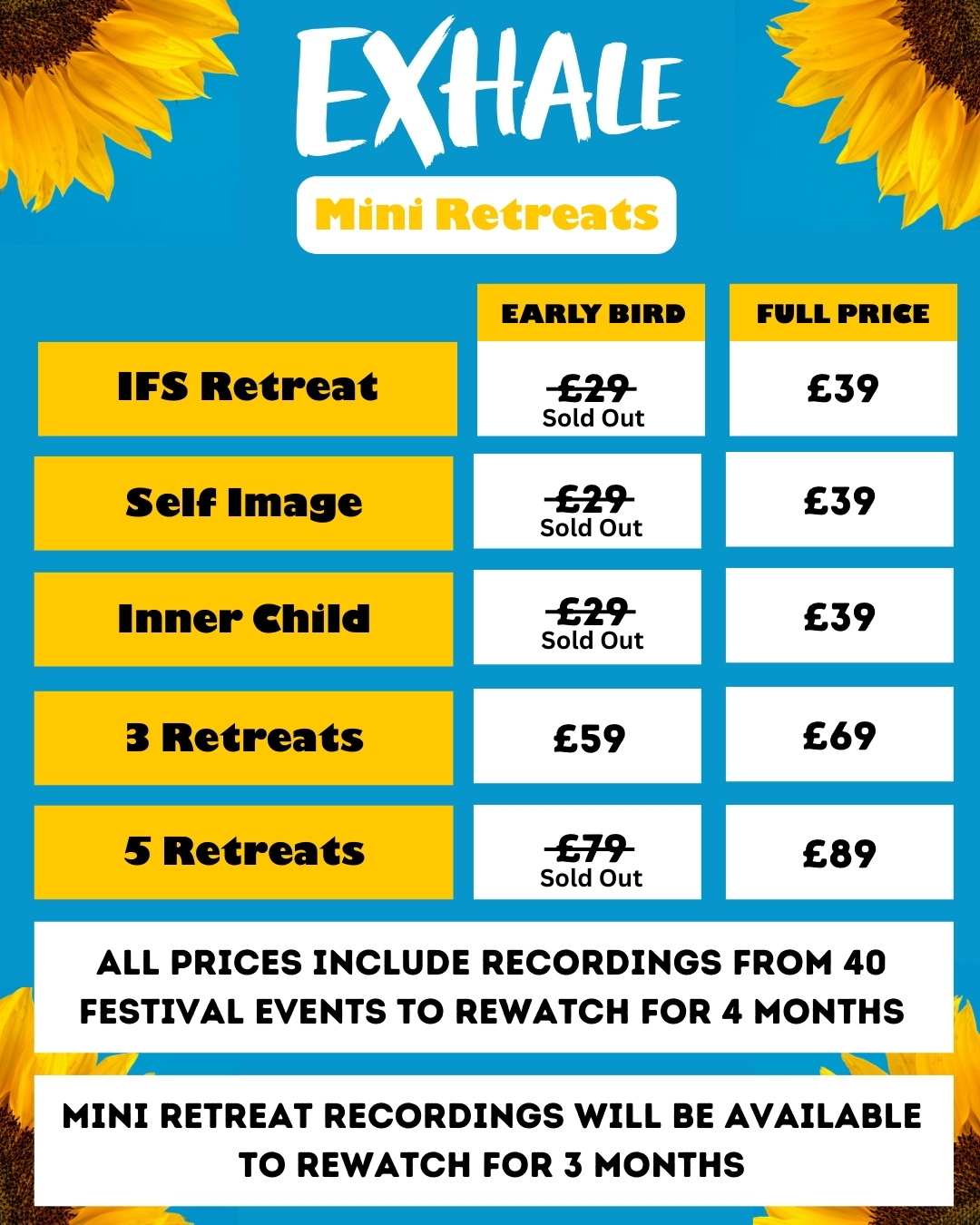 3 Mini Retreats for £59. Includes recordings to rewatch for 3 months.