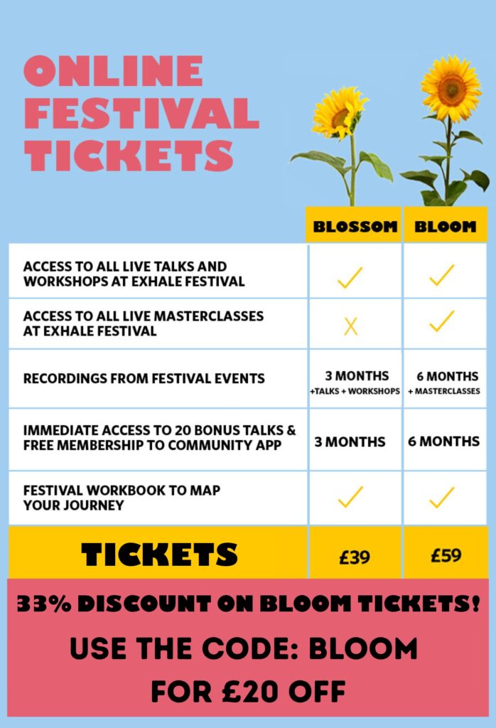 - Get a BLOOM ticket (£59) for the price of a BLOSSOM ticket (£39)